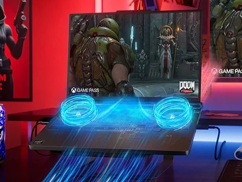 Залишайтеся спокійними та тихими завдяки турбо-вентиляторам та 3D-мідним тепловим трубкам, які працюють як гіперкамерне рішення. Використовуйте FN+Q для перемикання між режимами «Тихий», «Баланс», «Продуктивність» та «Екстремальний», налаштованими Lenovo AI Engine+ для стабільної високої частоти кадрів. Прецизійні вентилятори, теплові трубки та Acoustic AI Sound Sync зменшують шум та оптимізують продуктивність, дозволяючи вам зосередитися на грі.