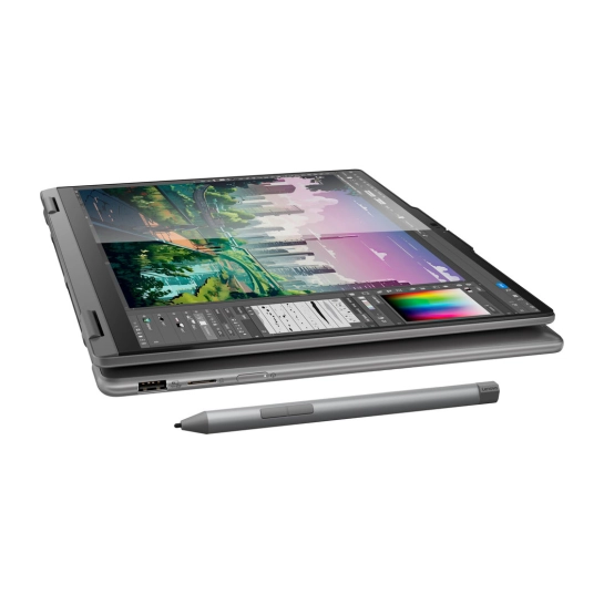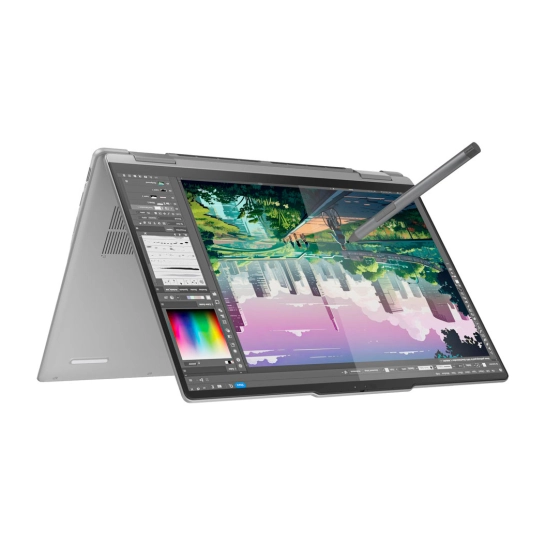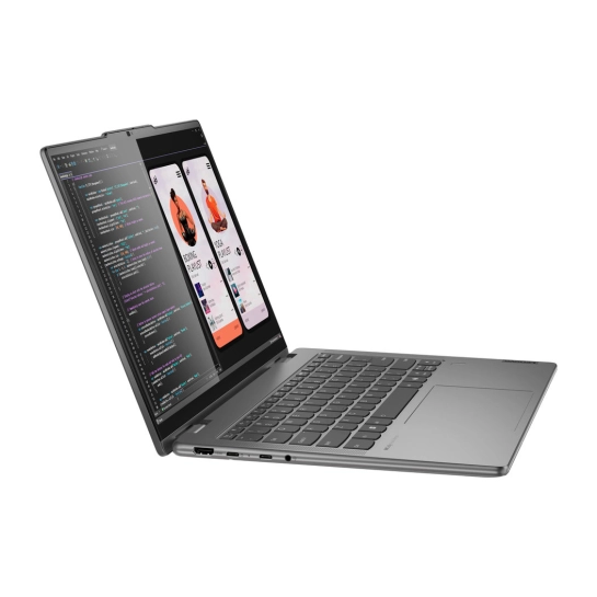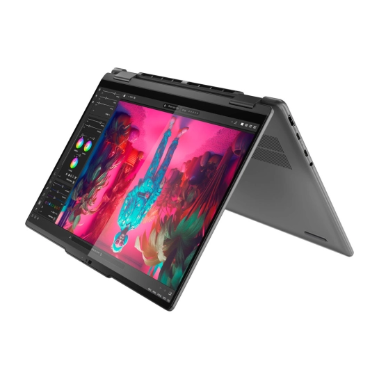 Ноутбук-трансформер Yoga 7 поражает качеством изображения и звука. Большой экран с широкой цветовой гаммой передает яркие и естественные оттенки, а технология Dolby Vision гарантирует потрясающую детализацию и контраст. Фронтальные динамики с поддержкой Dolby Audio создают объемное звучание, полностью вовлекающее тебя в происходящее. Управлять системой легко и интуитивно — благодаря стеклянному сенсорному экрану, реагирующему на 10 одновременных касаний.