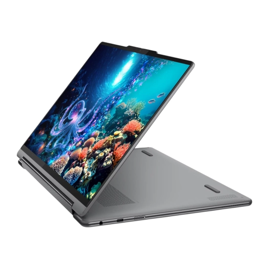 Изящный ноутбук «2-в-1» Yoga 9i Gen 9 – это по-настоящему универсальное устройство, которое станет твоим надежным и удобным компаньоном, где бы ты ни находился – в дороге, в кафе или на деловой встрече. Переведи его в режим подставки и наслаждайся увлекательным контентом, эффективно работай в дороге в режиме планшета или сконцентрируйся на самых сложных задачах, включив режим ноутбука. И никаких компромиссов между гибкостью и стилем: это потрясающее устройство толщиной всего 15,9 мм заключено в цельный корпус с закругленными глянцевыми краями, обеспечивающими комфорт при использовании.