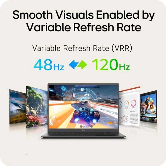 Наслаждайтесь графикой на 16-дюймовом OLED-экране с разрешением WQXGA+ (2880x1800). Технология переменной частоты обновления (VRR) от 48 до 120 Гц обеспечивает плавность динамических сцен и экономию энергии. Цветовой охват DCI-P3 100% гарантирует кинематографическую точность цветопередачи, а яркость 400 нит позволяет комфортно работать при любом освещении.