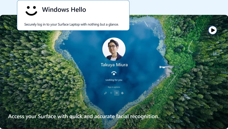 Windows Hello — безопасно входите в систему Surface Laptop одним взглядом.