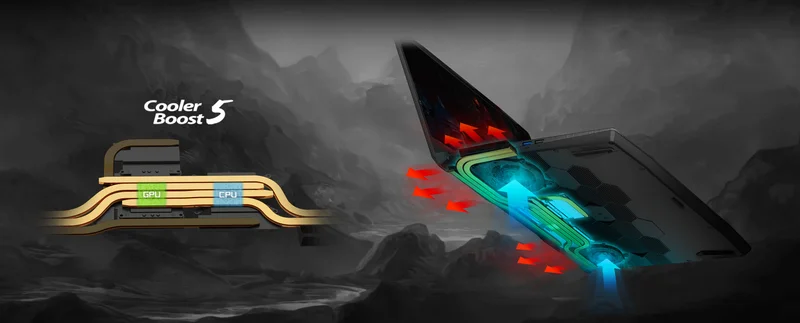 Новейшая версия эксклюзивной системы охлаждения Cooler Boost 5, с увеличенного размера вентиляторами и широкими тепловыми трубками, обслуживает и центральный, и графический процессоры, гарантируя их стабильную работу под высокими игровыми нагрузками.