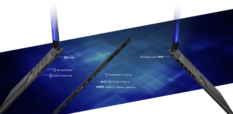 Prestige 16 AI Evo B1M предлагает множество портов: USB Type-A, USB Type-C, устройство чтения карт SD, HDMI 2.1 и Thunderbolt 4. Всегда оставайтесь на связи и работайте продуктивно, наслаждайтесь ультратонким и сверхлегким ноутбуком без компромиссов.