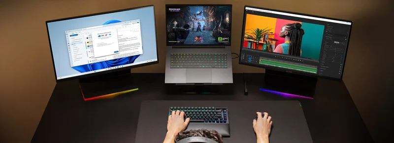 Теперь, благодаря двум встроенным портам Thunderbolt, игровой ноутбук Blade 18 может поддерживать больше мониторов с высоким разрешением, расширяемое хранилище и док-станции, чем когда-либо прежде. Оставайтесь на связи в пути благодаря портативным функциям настольного компьютера.