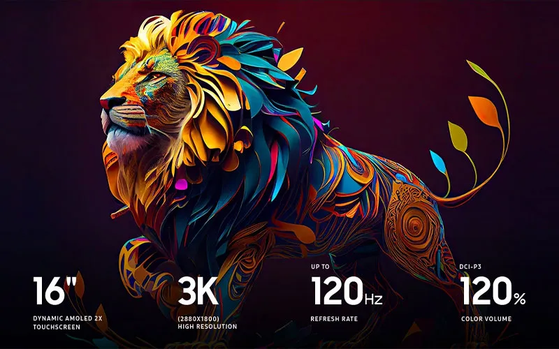 Экран размером 16 дюймов с разрешением 3K Dynamic AMOLED 2X поражает своей детализацией и великолепными цветами. Он позволяет воплотить ваше творческое видение благодаря высокой яркости, плавной частоте обновления до 120 Гц и снижению синего излучения для комфортного восприятия.