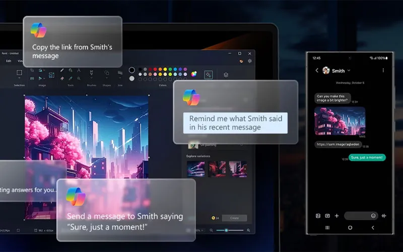 Microsoft Copilot превращает ваши подсказки в действия с помощью простых команд чата. Подключите ваш телефон Galaxy к Copilot, чтобы получить персонализированную помощь на основе искусственного интеллекта, которая способна управлять задачами, обобщать сообщения и даже отправлять текстовые сообщения прямо с вашего ПК.