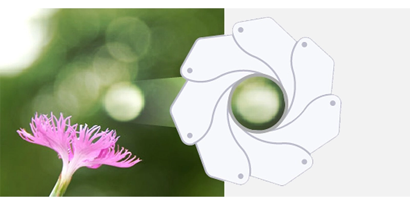 В отличие от стандартных объективов с многоугольной диафрагмой, этот объектив имеет круглую 7-лепестковую диафрагму, которая обеспечивает более естественные закругленные эффекты дефокусировки или "боке".