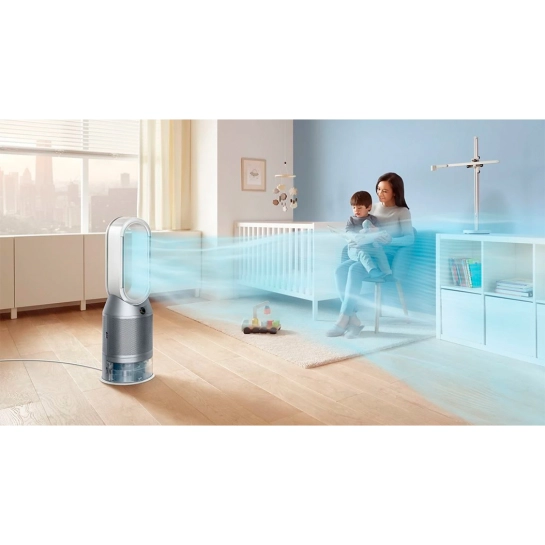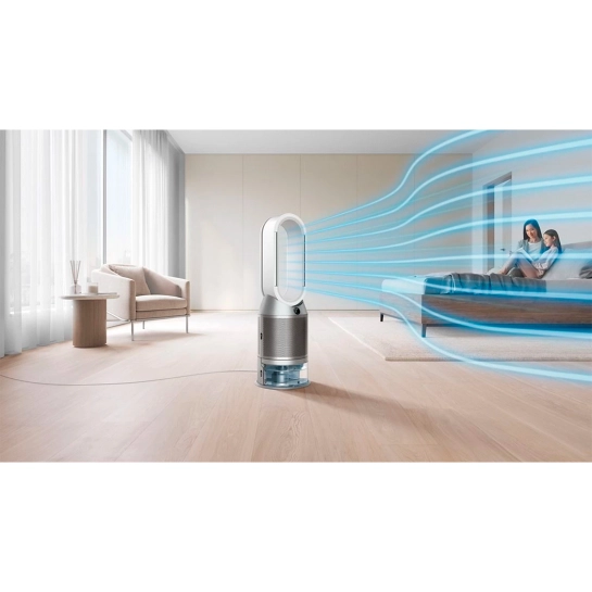 Технология Air Multiplier™ распределяет очищенный нагретый воздух по комнате. Как только достигается целевая температура воздуха в помещении, нагрев воздуха автоматически прекращается.