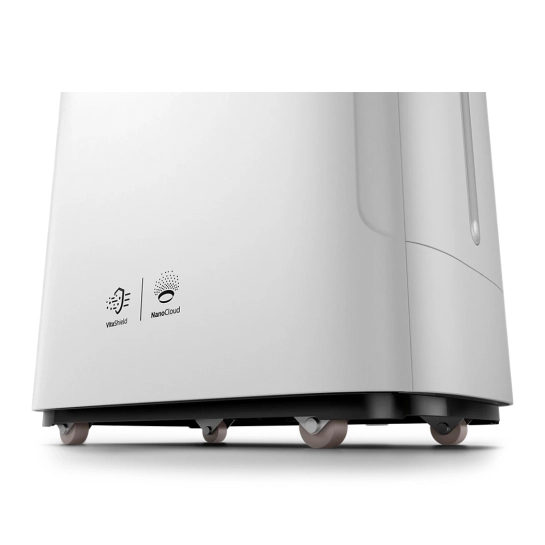 Технология NanoCloud увлажняет воздух тихо и эффективно, распространяя на 99% меньше бактерий. NanoCloud работает путем естественного испарения, создавая невидимый туман из молекул чистого водяного пара наноразмера. Благодаря такому мелкому размеру молекулы равномерно увлажняют воздух, а бактериям и минералам чрезвычайно трудно прикрепиться к ним, что предотвращает распространение бактерий и белой пыли в комнате.