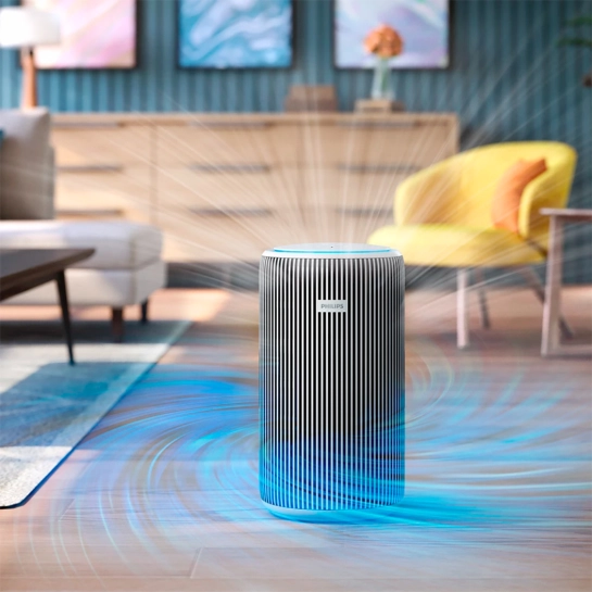 Компактный размер и более высокая скорость очистки благодаря инновационному дизайну с двумя вентиляторами. Высокий показатель скорости очистки CADR 520 м³/ч означает, что это устройство легко справится с очисткой воздуха в больших помещениях площадью до 135 м², а очистка комнаты 20 м² займет менее 6 минут.