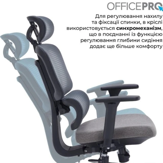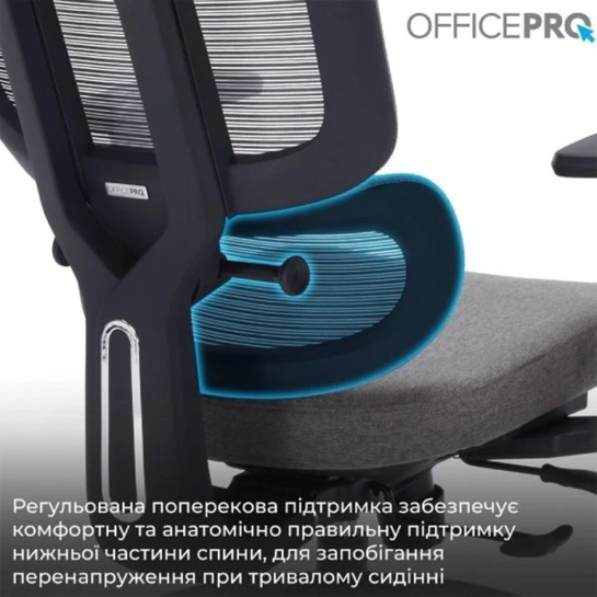 OfficePro Skyline OC580 – это эргономичное, высококачественное офисное кресло с широкими возможностями персональных настроек. Благодаря сплошному сетчатому покрытию спинки и крепкому пластиковому каркасу обеспечивается свободная циркуляция воздуха, что придает свежести и легкости во время эксплуатации. А мягкое сиденье, заполненное внутри пеной, придаст еще больше срочности и комфорта во время длительной эксплуатации. Регулируемая поясничная поддержка обеспечивает эргономичную поддержку нижней части спины, чтобы предотвратить перенапряжение при длительном сидении. Угол наклона и высота подголовника регулируется для оптимального позиционирования. А благодаря регулировке спинки высотой вы можете настроить удобное положение спинки для своего роста. Нейлоновые 3D подлокотники, покрытые мягким полиуретаном, регулируются по высоте, вперед-назад и изменяют угол поворота по горизонтали (наружу или внутрь). Для регулировки наклона и фиксации спинки в кресле используется синхромеханиз, что в сочетании с функцией регулировки глубины сиденья придает еще больше комфорта.