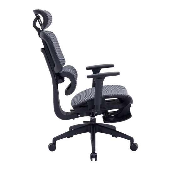Как приятный бонус ко всем вышеперечисленным возможностям, кресло оборудовано складной подставкой для ног. Она поможет снять напряжение и улучшить кровообращение во время перерывов, а также занять полностью горизонтальное положение, используя наклон спинки.