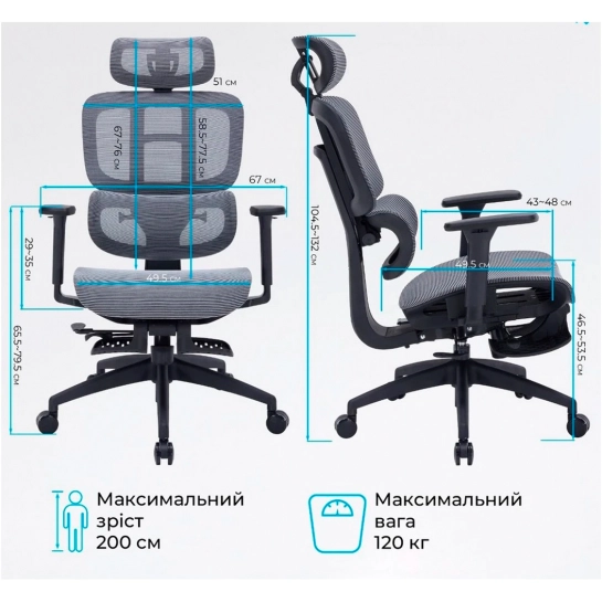 Регулируемая поясничная поддержка обеспечивает эргономично правильное положение спины, чтобы предотвратить перенапряжение при длительном сидении. Угол наклона и высота подголовника регулируется для оптимального позиционирования. А благодаря регулировке спинки высотой вы можете настроить удобное положение спинки для своего роста. Нейлоновые 3D подлокотники, покрытые мягким полиуретаном, регулируются по высоте, вперед-назад и изменяют угол поворота по горизонтали (наружу или внутрь). Для регулировки наклона и фиксации спинки в кресле используется синхромеханизм, который в сочетании с функцией регулировки глубины сиденья придает еще больше комфорта.