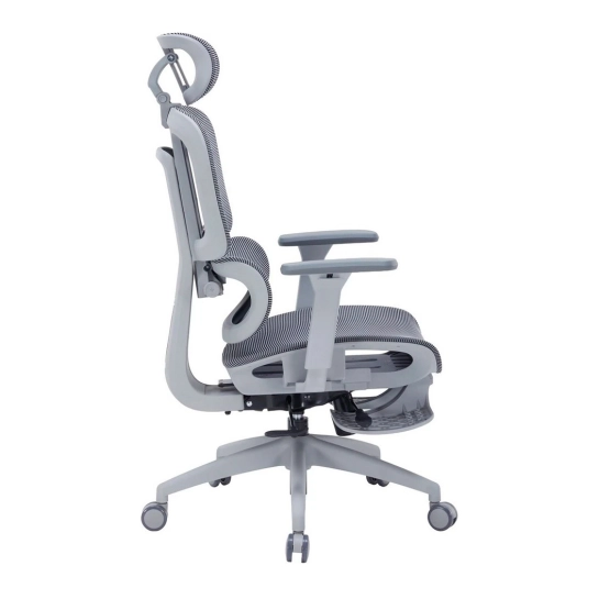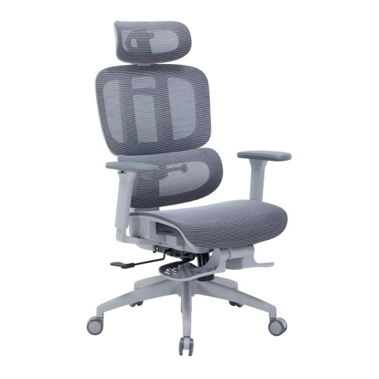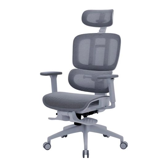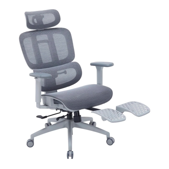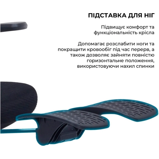 Как приятный бонус ко всем вышеперечисленным возможностям, кресло оборудовано складной подставкой для ног. Она поможет снять напряжение и улучшить кровообращение во время перерывов, а также занять полностью горизонтальное положение, используя наклон спинки.