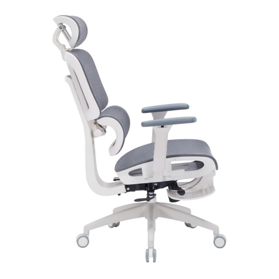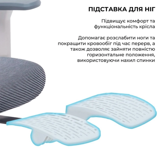 Как приятный бонус ко всем вышеперечисленным возможностям, кресло оборудовано складной подставкой для ног. Она поможет снять напряжение и улучшить кровообращение во время перерывов, а также занять полностью горизонтальное положение, используя наклон спинки.