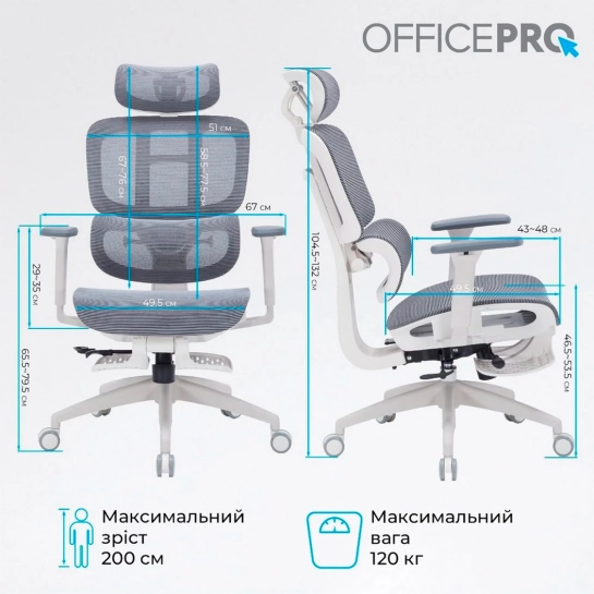 Характеристики для Офисное кресло OfficePro Skyline OC750-W-DG-DG