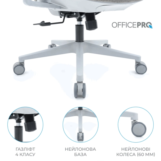Кресло установлено на крепкой нейлоновой базе с колесами размером 60 мм, что обеспечивает стабильность и плавность перемещения. Officepro Wave – идеальный выбор для тех, кто ценит комфорт, качество и современный дизайн.