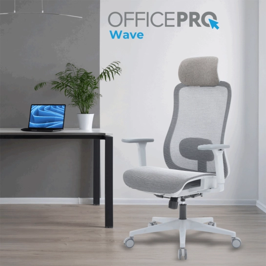Кресло установлено на крепкой нейлоновой базе с колесами размером 60 мм, что обеспечивает стабильность и плавность перемещения. Officepro Wave – идеальный выбор для тех, кто ценит комфорт, качество и современный дизайн.