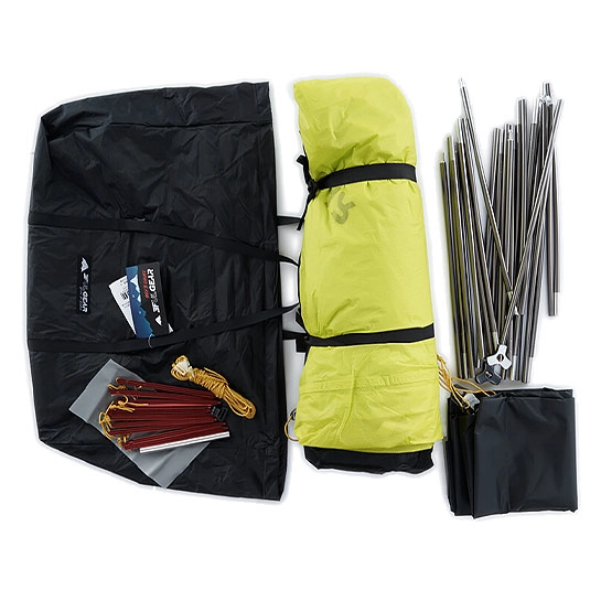 В комплекте предусмотрены заплатки на случай прокола изделия. Помещается в удобный чехол, выполняющий функции герметичного мешка. В комплект вошли ветровые веревки, подвесная пряжка, ремонтная трубка шеста.