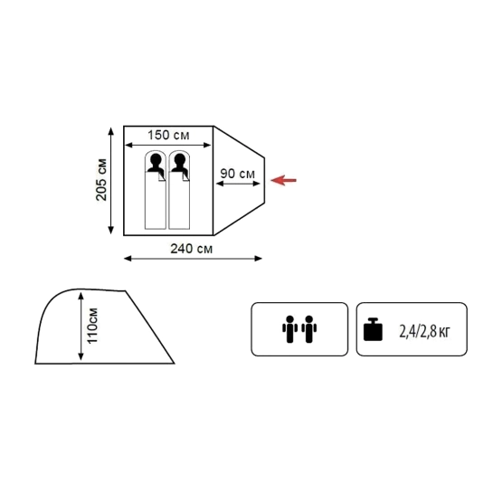 - Однослойная палатка с вместительным тамбуром;