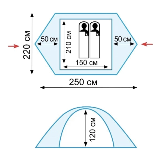 - Внутренняя палатка: 100% дышащий полиэстер;