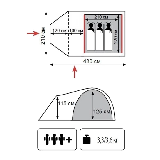 Характеристики для Палатка трёхместная Tramp Carriage