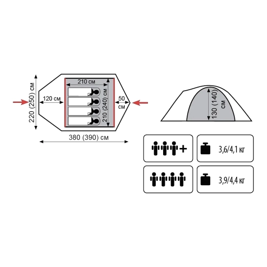 - Внутренняя палатка: 100% дышащий полиэстер;