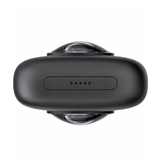 Корпус камеры имеет удлиненную закругленную форму. Её легко удерживать в руке и всегда можно положить в карман, ведь максимальный размер составляет всего 115 мм, а вес 115 грамм. Это портативное устройство, не имеющее ничего лишнего в своем исполнении. В верхней части изделия расположены два модуля камеры, по одному на каждой стороне, а под одним из них расположился крошечный светодиодный экран и две кнопки: одна для включения и быстрого выбора режимов/параметров съемки, другая для активации/приостановки процесса. Отсутствие встроенного полноценного дисплея, на котором можно было бы просматривать отснятое, не является значительным минусом, потому что пришлось бы увеличивать общие размеры девайса. Вместо этого, Вы можете использовать свой смартфон для удобного просмотра. Нижняя грань слегка сплющена, что позволяет экшн-камере 360 стоять на плоской поверхности (рекомендуется использовать триногу или штатив для установки). Внизу предусмотрено стандартное крепление для штатива, монопода и других вспомогательных аксессуаров, а также слот для карты microSD емкостью до 128 ГБ и рекомендованной скоростью UHS-I V30. Прямая передача файлов и зарядка выполняются через разъем micro-USB на одной стороне, а съемный аккумулятор вставляется в специальный разъем на другой. Insta360 ONE X не защищена от попадания влаги и пыли, что несколько ослабляет преимущества в целом. Вы повысить устойчивость устройства к воде с помощью фирменных прозрачных кейсов Venture Case (до 5 метров погружение) или Dive Case (до 30 м погружения), которые можно купить отдельно.