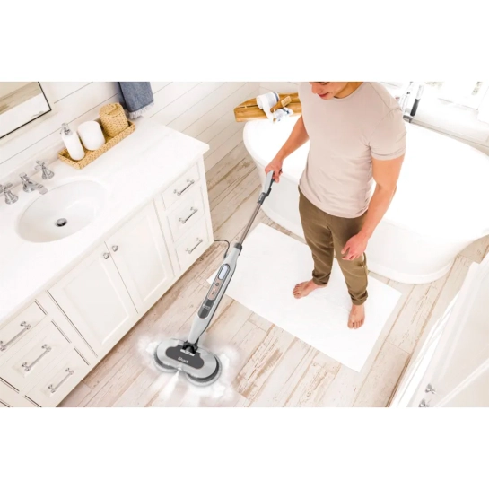 Рабочая поверхность состоит из двух вращающихся насадок, которые работают вместе с паром, чтобы обеспечить максимально тщательное очищение. Это настоящая паровая система, которая удаляет даже самые стойкие пятна и остатки грязи, накапливающиеся в течение недель или даже месяцев. Накладки вращаются и создают плотный контакт с поверхностью, растворяют и удаляют пыль, жир и другие загрязнения. Если у вас есть дети или домашние питомцы, функция будет особенно полезна для удаления пятен и следов от лап без лишних усилий.
