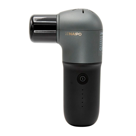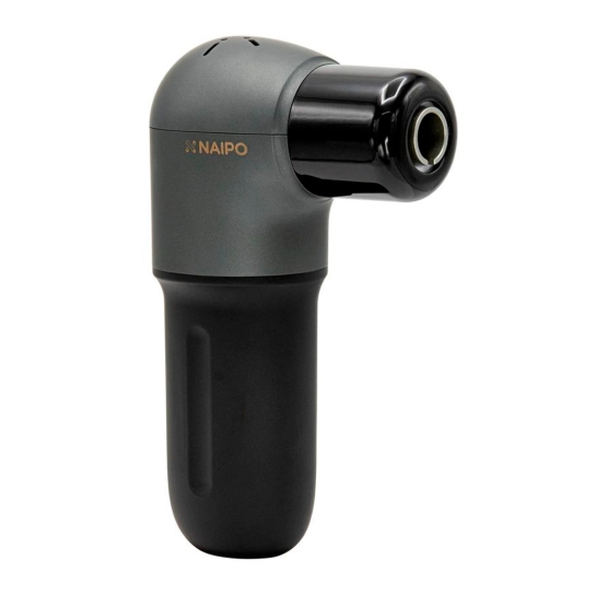 Мини-пистолет для массажа NAIPO имеет форму перевернутой буквы «L» с нескользящей ручкой, которая слегка сужается книзу. Эргономичный дизайн делает его удобным и легким для работы одной рукой.