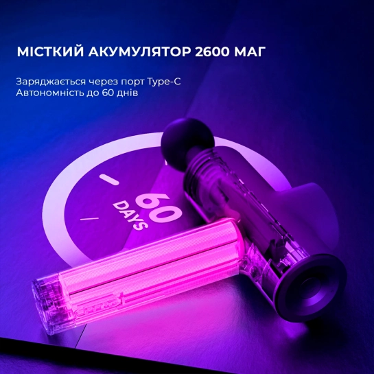 Заряжайте массажер раз в два месяца с помощью кабеля USB-Type C и пользуйтесь им каждый день в течение 10 минут. При таком подходе автономности устройства хватит на 60 дней, что особенно важно в путешествиях, командировках и долгих поездках.