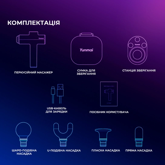 Комплектация портативного массажера YUNMAI Massage Gun Prime 2