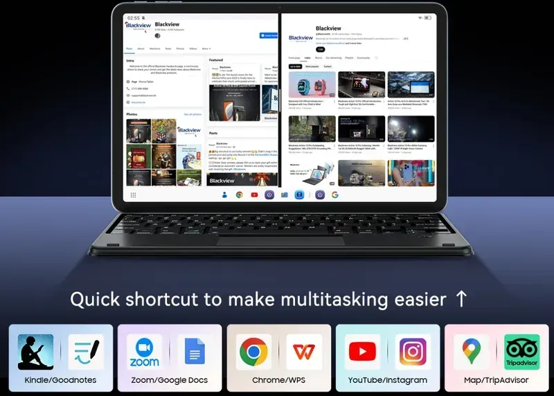 MEGA 2 предлагает большее разрешение и дополнительную площадь экрана, что делает его идеальным как для чтения, так и для игр. Blackview MEGA 2 напоминает ноутбук, а благодаря большому 12-дюймовому экрану улучшает ваши впечатления от просмотра.