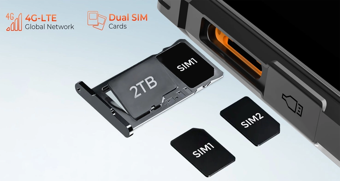 Hotwav R7 имеет два слота для Nano-SIM и поддерживает сети 4G (LTE). Это удобно для одновременного использования рабочей и личной линии. Отдельный слот для карты памяти до 2 ТБ обеспечивает дополнительное пространство для файлов без потери функциональности.