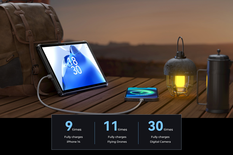 Зарядите ваш RT7 Titan с помощью сверхбыстрой зарядки мощностью 33 Вт, идеально подходящей для ваших динамичных занятий на свежем воздухе. Всего за 360 минут мощный аккумулятор емкостью 32 000 мАч достигает полной мощности, гарантируя бесперебойные путешествия, которые могут продлиться более 180 дней.