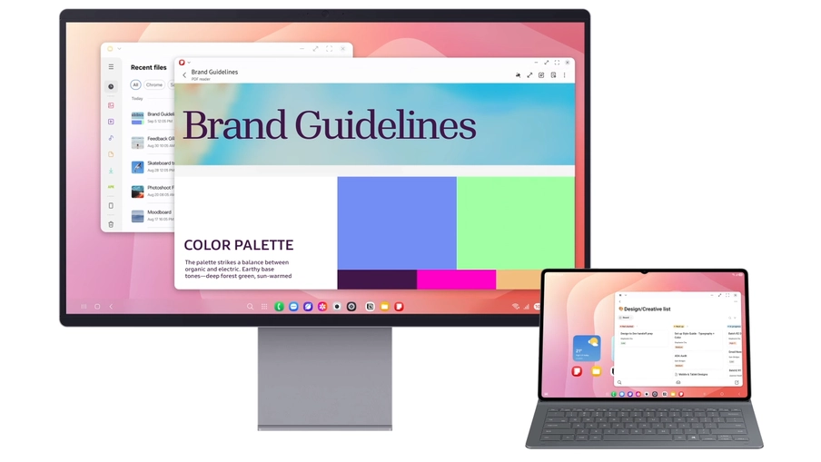 Samsung DeX позволяет расширить экран Galaxy Tab S11 Ultra и создать удобную среду многозадачности — с возможностью открывать до 4 отдельных рабочих пространств. Перетаскивайте приложения между экранами, переключайтесь между задачами без задержек и держите рабочий процесс под контролем. Повышайте эффективность благодаря многоэкранному режиму — перетаскивайте окна между дисплеями или транслируйте сохраненный контент на большой монитор, превращая Galaxy Tab S11 Ultra в домашний кинотеатр.