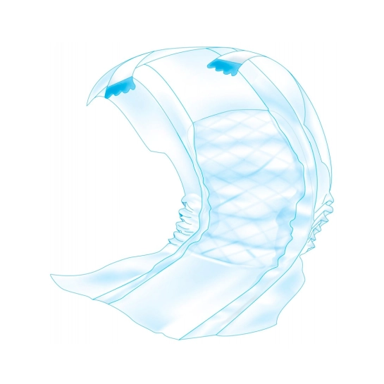 Конструкция подгузников специально разработана для кобелей с учётом анатомических особенностей. Материал – ткань, пропитанная специальным абсорбирующим гелем, способным поглощать большие объёмы жидкости. Подгузник удобный, не передавливает туловище собаки, поэтому она не стремится его снять.