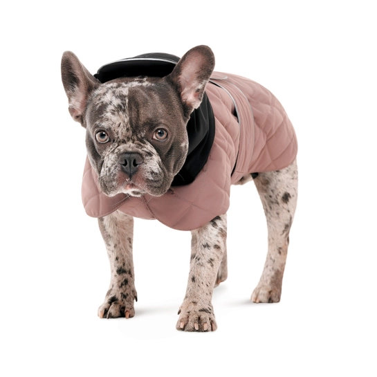 Водонепроницаемая ткань, гипоаллергенный утеплитель, капюшон для защиты головы от дождя позволяют песику хорошо чувствовать себя в непогоду. Мягкие петли для задних лап предотвращают скольжение попоны, улучшают прилегание одежды к телу. Светоотражающие детали и светодиод на спинке делает прогулки в темноте более безопасными. На спинке есть отверстие для поводка.