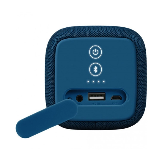 Корпус лаудспикера изготовлен преимущественно из матового пластика, благоприятно влияющего на общий вес решения. Также в наличии оригинальный ремешок, надежно зафиксированный на металлической пуговице. Стоит отметить, что бо́льшая часть конструкции обтянута пористой тканью, которая не боится попадания водяных брызг. Схема управления функционалом акустики представлена набором механических клавиш, радующих приятным щелчком. Примечательно, что клавиши включения и активации соединения по Bluetooth располагают подсветкой, отличающейся мягким белым свечением. Более того, присутствует и светодиодный индикатор, оповещающий о текущем заряде аккумулятора. К слову, по заверению производителя от одного полного заряда спикер способен проработать до 15-ти часов в режиме непрерывной трансляции аудио. Не обошлось и без опции подзарядки портативных девайсов, реализуемой посредством порта USB-A, расположенного под заглушкой рядом с AUX-входом.