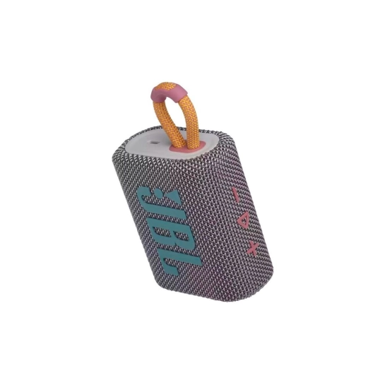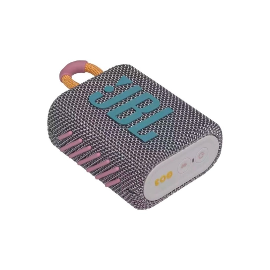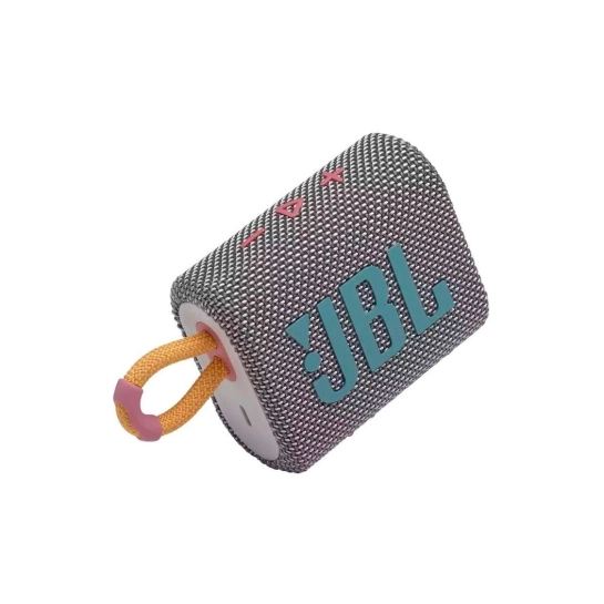 В стильном корпусе JBL Go 3 удачно сочетаются разноцветная ткань и выразительные детали — колонка выглядит так же великолепно, как и звучит.