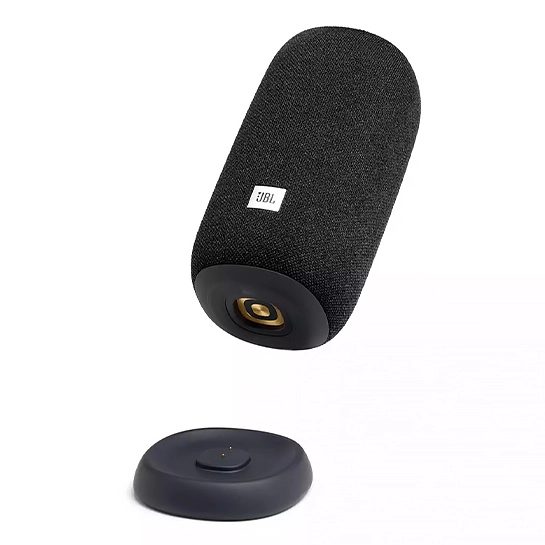 - Удобная зарядка. JBL Link Portable можно не выключать во время зарядки. Просто поставьте колонку на док-станцию и продолжайте слушать музыку или общаться с Гугл ассистентом.