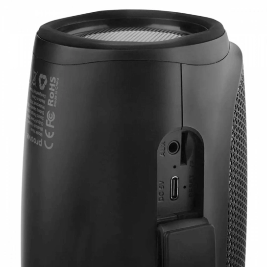 Колонка поддерживает несколько способов воспроизведения: Bluetooth 5.3 для стабильного беспроводного соединения, карту памяти MicroSD, проводное подключение через AUX, а также функцию TWS для объединения двух колонок в полноценную стереосистему. Зарядка осуществляется через современный порт Type-C, а защита IPX5 позволяет использовать устройство даже в условиях повышенной влажности, например, на пикнике или у бассейна.