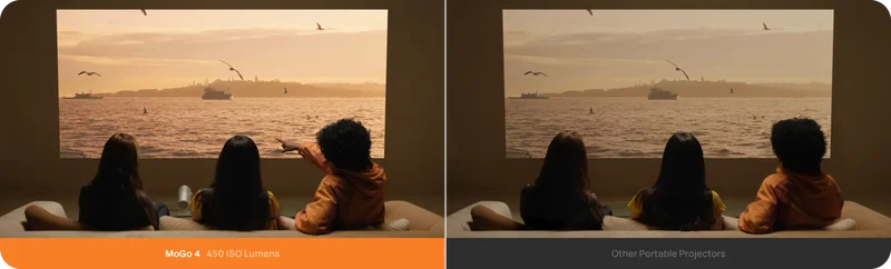 Будьте смелыми и амбициозными! Наслаждайтесь впечатляющими изображениями с исключительной яркостью на MoGo с огромным экраном размером до 120 дюймов.