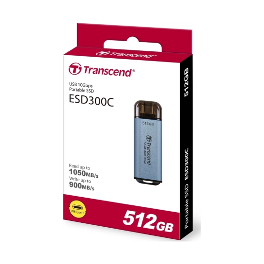 Описание Портативний SSD Transcend 512GB USB 3.1 Gen 2 Type-C ESD300 Blue (TS512GESD300C)