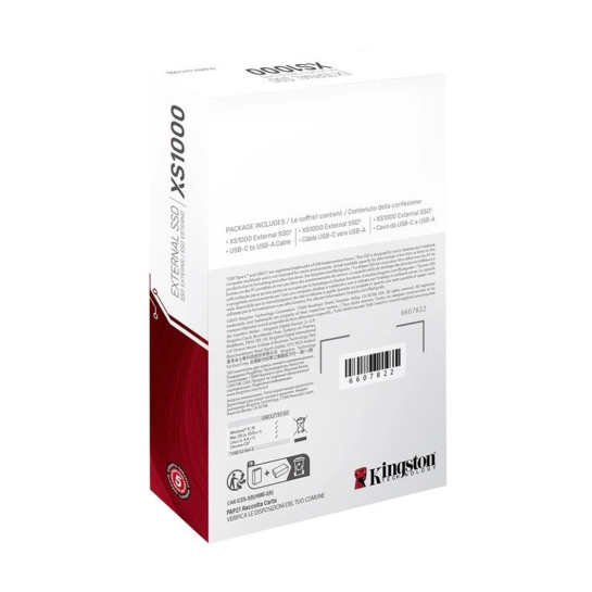 Внешний SSD-накопитель XS1000 от Kingston является чрезвычайно удобным решением для резервного копирования файлов. Благодаря компактному формфактору он чрезвычайно эргономичен. Но пусть компактность устройства не вводит вас в заблуждение: скорость до 1050 МБ/с и емкость до 2 ТБ позволяют ему надежно хранить даже очень большие объемы данных. Накопитель XS1000 совместим с устройствами, оснащенными портами USB Type-C3 и Type-A, и подключается к ним через кабель и переходник, входящие в комплект поставки, обеспечивая невероятное удобство и впечатляющие возможности для хранения данных. Это надежный помощник для резервного копирования данных, благодаря которому вы всегда сможете держать под рукой важные документы, памятные фото и медиафайлы. Внешний SSD-накопитель XS1000: новый уровень эффективности хранения данных! Доступен в черном или красном цвете с дополнительными резиновыми чехлами, которые продаются отдельно.