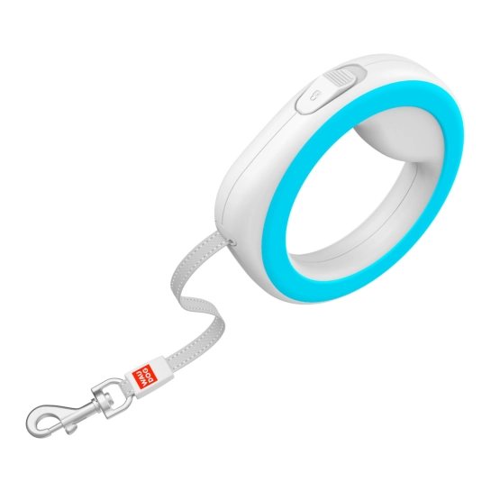 Поводок-рулетка для собак WAUDOG R-leash круглая XS-M до 40 кг 2,9 м светоотражающая лента Голубой (81272)