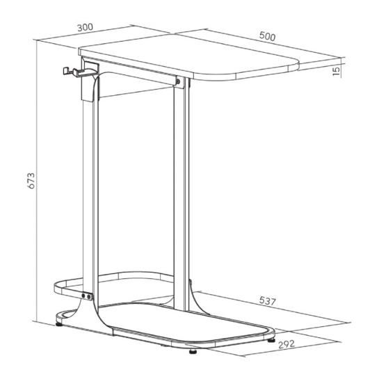 Благодаря своей конструкции он легко устанавливается к дивану, креслу или кровати, обеспечивая удобное место для ноутбука, телефона, книги, перекуса или других вещей, которые должны быть под рукой. Дополнительная полка увеличивает простор для хранения, а крючок для наушников помогает сэкономить место на столе. Стол имеет регулируемые ножки, обеспечивающие стойкость даже на неровном полу.