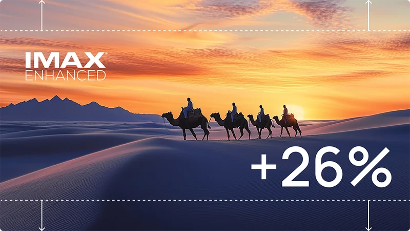 Расширенное соотношение сторон IMAX 1,9:1 обеспечивает мгновенное увеличение размера изображения на 26%.