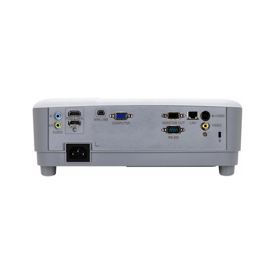 Кроме двух входных разъемов HDMI (MHL), S-Video и выходного разъема VGA, эти проекторы оснащены разъемом RS232 и портом для подключения к ЛВС. Порты для обмена данными сертифицированы для поддержки сетевых решений от Crestron, AMX и PJ Link, что облегчает удаленный мониторинг и управление этим проектором.