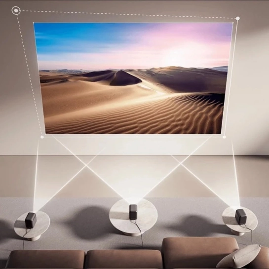Высокоточная камера, оснащенная алгоритмом ИИ, умело избегает такие препятствия, как настенные выключатели и рамки для фото, определяя подходящую область для проецирования и обеспечивая целостность изображения.